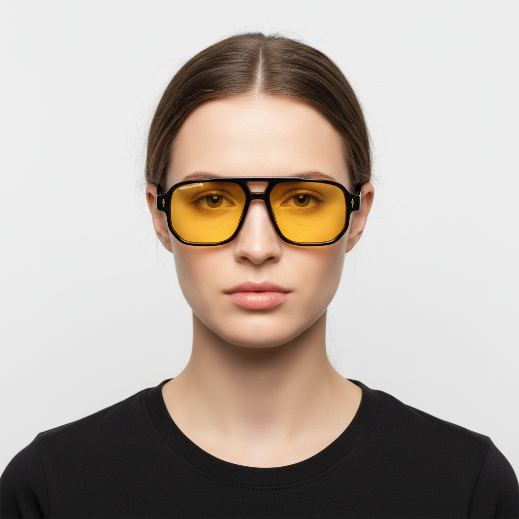 Las gafas ASTON BLACK YELLOW de Handover ofrecen un diseño sofisticado con lentes amarillo transparente con montura negra brillante. Un look único que combina elegancia y personalidad.