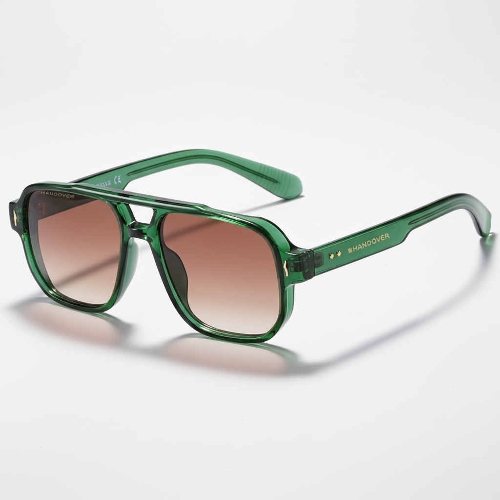 Las gafas ASTON GREEN BROWN de Handover ofrecen un diseño sofisticado con lentes café transparente con montura verde brillante. Un look único que combina elegancia y personalidad.