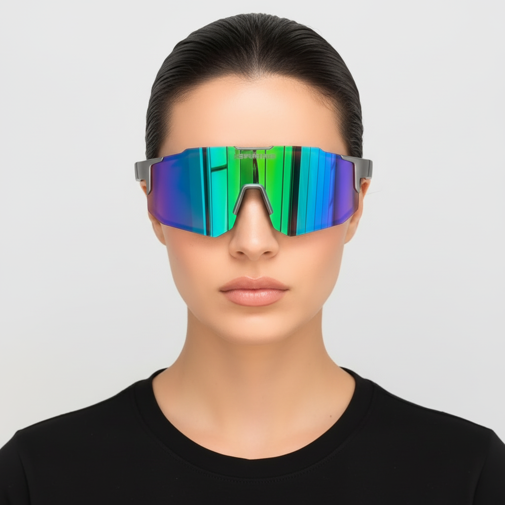• Lentes: Verde/azul degradado efecto espejo con protección UV400 para running, ciclismo y actividades outdoor