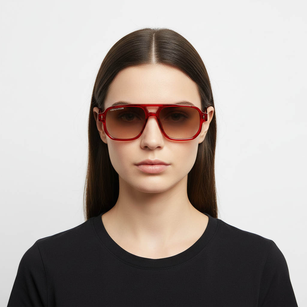 Las gafas ASTON RED TEA de Handover ofrecen un diseño sofisticado con lentes café transparente con montura rojo brillante. Un look único que combina elegancia y personalidad.